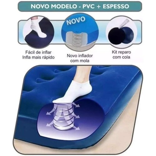 Colchão Inflável Solteiro Mor Multiuso com Fole - Azul