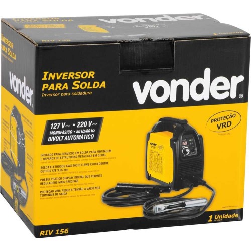 Vonder, Inversor Para Solda Com Eletrodo E Tig, 150 A, Riv 156, Com Display Digital, Monofásico, 127 V~ - 220 V~ - Seleção Automática.