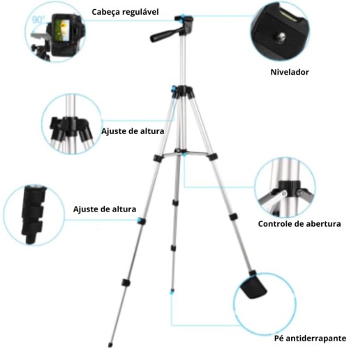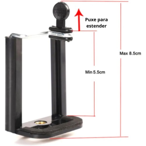 Acompanha um suporte dedicado para smartphones, permitindo capturar imagens e vídeos com total estabilidade, compatível com a maioria dos celulares disponíveis no mercado, proporcionando flexibilidade e praticidade para criar conteúdo de alta qualidade em qualquer lugar.