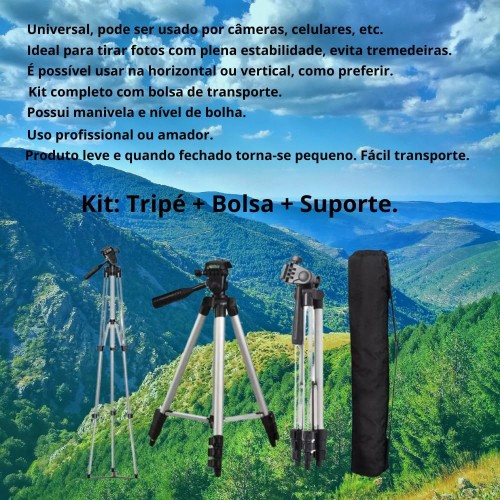 Tripé Profissional Universal Para Celular e Câmera 1,3M Com Bolsa De Transporte Tripod Pedestal