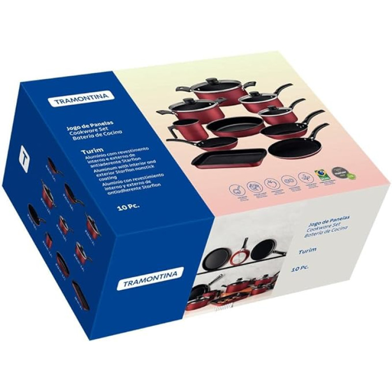 Jogo de Panelas Tramontina Antiaderente Turim 10 Pç Vermelho