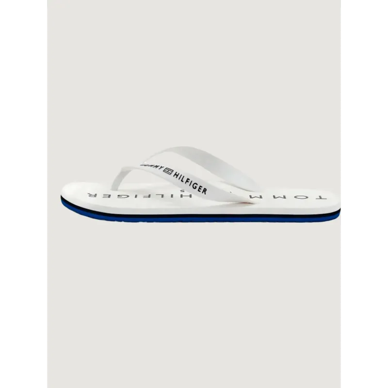 Chinelo de tiras masculino Tommy Hilfiger na cor branca com solado em azul.