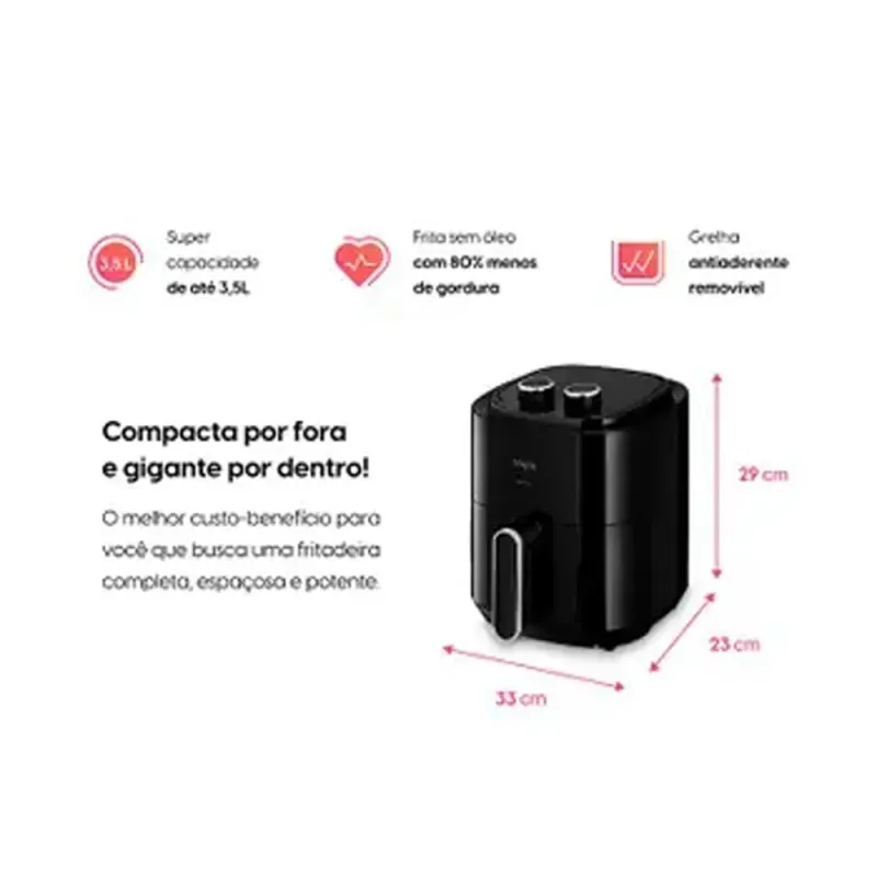 1 Fritadeira Elétrica sem Óleo Tart Fry 3,5L Preta 1400W 42AFR5001000 - ElginAviso Importante: