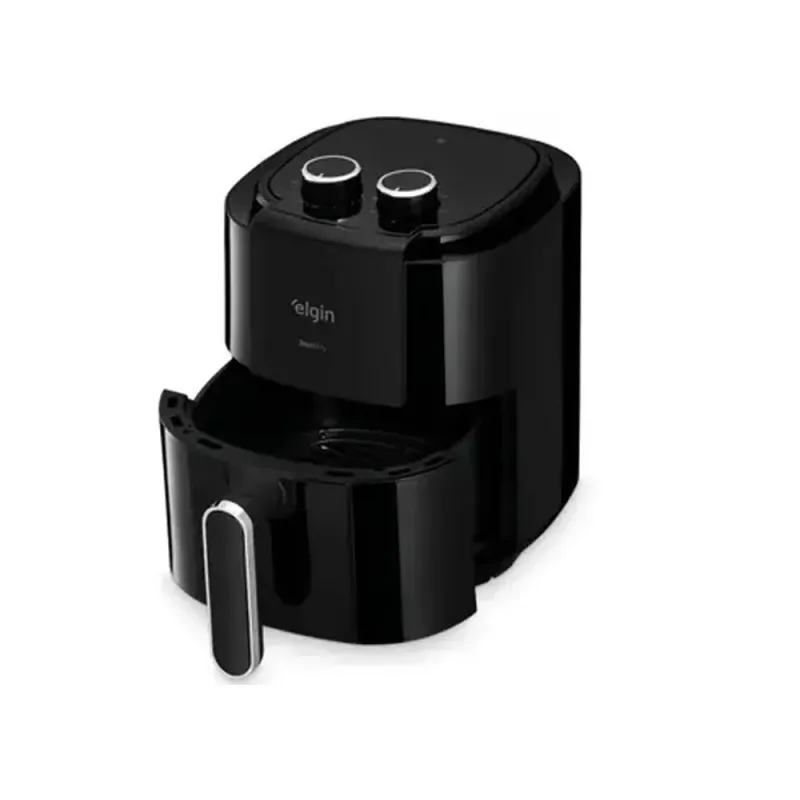 Fritadeira Elétrica sem Óleo Tart Fry 3,5L Preta 1400W 42AFR5001000 - Elgin - Dorémi Casa & DecorA fritadeira elétrica sem óleo start fry da Elgin possui um design único, capacidade para até 3,5 litros, potência de 1400w e revestimento antiaderente. Seu sistema de circulação de ar ultra rápido frita e economiza energia. Sua grelha de fritura é removível e super fácil de limpar. Ela conta com uma proteção contra super aquecimento. Possui controle de temperatura de 80°c a 200°c que permite você programar a temperatura de preparo para cada tipo de alimento, timer para até 60 minutos com aviso sonoro e desligamento automático, assim você pode deixar preparando sua refeição enquanto realiza outras tarefas. Possui base antiderrapante e alça fria que facilitam o uso.CARACTERÍSTICAS: