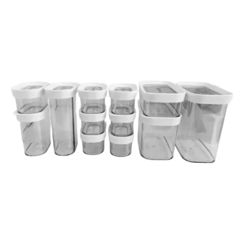 Kit Conjunto De 12 Potes Herméticos Mantimentos E Temperos Cor Branco